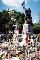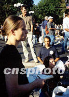 組圖:曼哈頓聯合廣場成公眾悼念場所 2001年09月22日 13:38 ![]() 曼哈頓下城,離世貿中心不遠處的聯合廣場,“九一一”以來成為紐約客悼念死難者的場所。這里遍地是花束、燭臺、國旗和失蹤者的像片,整日人來人往,昔日各種街頭露天表演不復見。中新社記者 郭健 攝 ![]() 自發悼念“九一一”遇難者是眼下紐約的特殊景觀。這位女畫家正在作現場速寫。中新社記者 郭健 攝