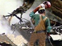圖:撞擊世貿大樓的一客機主體被挖出 2001年09月25日 15:01 ![]() 九月十一日撞擊美國世貿大樓的一客機主體日前被挖出,這截主體殘骸大約有三米長,挖出后馬上被聯邦調查局人員運走進行檢查。 |