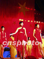![]() 正在青島舉行的2001中國青島時裝周暨服裝服飾博覽會,國慶節(jié)之際舉行大型文藝晚會“海韻霓裳”。圖為五星紅旗下模特表演。中新社記者 錢興強 攝 ![]() 正在青島舉行的2001中國青島時裝周暨服裝服飾博覽會,國慶節(jié)之際舉行大型文藝晚會“海韻霓裳”。圖為青島紡織服裝表演隊,展示新款面料服裝。中新社記者 錢興強 攝