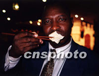 圖:非洲旅游者在福州過中秋 2001年10月06日 10:12 ![]() 隨著福州市對外開放步伐的加快,越來越多的非洲人到福州旅游。國慶中秋假期里,一位非洲游客在福州一家餐廳用餐,興致勃勃地用筷子品嘗中國的食品。中新社圖 陳勇 攝 |