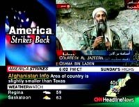 本·拉登發表錄像講話誓言讓美國不得安寧 2001年10月08日 05:34 ![]() 拉登在講話中發誓:在巴勒斯坦實現和平之前,美國人將再也無法過上和平的生活。 ![]() 美軍協同英軍開始對阿富汗境內恐怖組織訓練營以及塔利班政權的軍事設施展開軍事打擊。其后不久,卡塔爾一家電視臺首先播放了本·拉登講話的錄像。拉登說:“我對真主起誓,除非巴勒斯坦人民能夠享受到和平,否則美國人將永遠不知和平為何物。”
