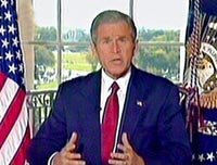 圖:布什發表講話宣布對阿富汗發動軍事進攻 2001年10月08日 10:45 ![]() 北京時間八日凌晨一時左右,美國總統布什在白宮官邸發表電視講話,宣布美國和英國已經開始對阿富汗塔利班當局軍事目標和伊斯蘭極端主義份子拉登的卡達訓練營進行軍事打擊。 |