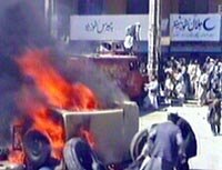 圖:巴反美示威演變成騷亂 2001年10月09日 10:36 ![]() 美英八日開始對阿富汗進行軍事打擊后,巴基斯坦爆發了大規模的示威游行,并演變為騷亂。憤怒的民眾襲擊了聯合國兒童基金會和聯合國難民署駐當地的建筑物。 |