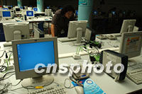 圖:上海新聞中心提供寬帶服務 2001年10月11日 19:09 ![]() 11日,技術人員正在上海國際新聞中心安裝寬帶網,為十月APEC采訪的記者提供快捷的服務。中新社記者 賈國榮 攝 |