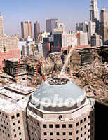 圖:紐約世貿中心斷垣殘壁 2001年10月13日 11:35 ![]() 采訪者近日從曼哈頓高處鳥瞰紐約世貿中心一號樓和周邊建筑廢墟,前面圓頂樓為世界金融中心,美林、運通、李門兄弟等著名金融公司就設在這里。“九一一”恐怖襲擊前,金融中心有天橋與世貿中心相連,“九一一”時天橋坍塌,樓頂現布滿建筑破損物。中新社圖 龔文謨 攝 |