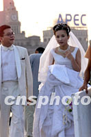 圖:APEC開幕前夕上海掀起結婚潮 2001年10月13日 14:53 ![]() 一對年輕夫婦十三日在上海濱江路拍攝結婚照,背景的高樓上豎立著APEC標記。亞太經合組織高峰會開幕在即,上海迎來青年人的結婚高峰。中新社記者 毛建軍 攝 |