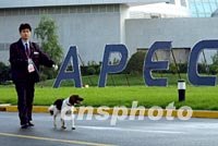 ![]() 上海警方出動警犬在APEC會議國際新聞中心巡邏,全球三千記者十四日開始進入清晨啟用的新聞工作區。中新社記者 賈國榮 攝 |
