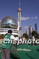 圖:上海國際會議中心外鋪設地毯迎接各國貴賓 2001年10月14日 19:10 ![]() 工作人員十四日在上海國際會議中心外鋪設地毯,迎接將于十五日開始舉行的亞太經合組織高官會等APEC重要會議。中新社記者 毛建軍 攝 |