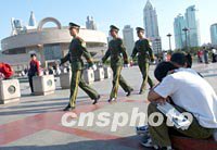 圖:上海博物館廣場警隊巡邏 2001年10月16日 11:36 ![]() 在上海博物館廣場,一隊武裝警察上海博物館巡邏而過,路旁一對小情侶正在熱戀之中。APEC會議的嘉賓十月中旬將在這里參觀中國文物。中新社記者 賈國榮 攝 |