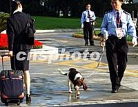 中國的搜爆犬在上海十月APEC峰會場地巡邏,一名赴會的小姐順利經過它的檢驗。中新社記者 賈國榮 攝