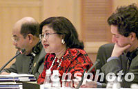 圖文:馬來西亞官員稱美國靠武力無法解決恐怖主義 2001年10月17日 18:44 ![]() 10月17日,2001年亞太經(jīng)合組織(APEC)部長(zhǎng)級(jí)會(huì)議在上海國際會(huì)議中心開幕。這是馬來西亞貿(mào)工部長(zhǎng)拉菲達(dá)·阿齊茲在會(huì)上發(fā)言。中新社圖