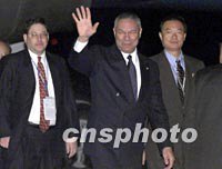 圖:美國國務(wù)卿鮑威爾抵達(dá)上海 2001年10月18日 10:14 ![]() 10月17日,美國國務(wù)卿科林·盧瑟·鮑威爾乘機抵達(dá)上海浦東國際機場。中新社圖 |