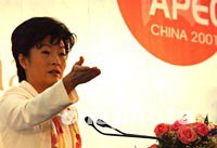 圖:章啟月談保安 2001年10月18日 10:25 ![]() APEC籌委會秘書處發言人章啟月十八日在上海國際新聞中心的早晨發布會上,多次強調中方對各國首腦的保安早有可靠措施。據悉美國總統布什今日飛抵上海。中新社記者 賈國榮 攝 |