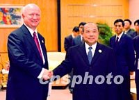 圖:中美商務(wù)高官會(huì)談 2001年10月18日 12:51 ![]() 中國對(duì)外經(jīng)濟(jì)貿(mào)易部石廣生部長十八日上午在上海國際會(huì)議中心與美國商務(wù)部副部長博德曼會(huì)談。中新社記者賈國榮攝 |