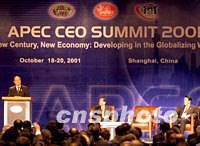 組圖:2001年APEC CEO峰會(huì)在上海開幕 2001年10月18日 15:05 ![]() 亞太經(jīng)合組織工商領(lǐng)導(dǎo)人峰會(huì)(APEC CEO)十八日下午在上海開幕,中國(guó)國(guó)務(wù)院副總理錢其琛出席開幕式并致辭。中新社記者 毛建軍 攝 ![]() 亞太經(jīng)合組織工商領(lǐng)導(dǎo)人峰會(huì)(APEC CEO)十八日下午在上海開幕,上海市長(zhǎng)徐匡迪出席開幕式并致辭。中新社記者 毛建軍 攝