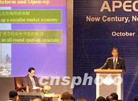 組圖:曾培炎在APEC CEO峰會上發表演講 2001年10月18日 15:33 ![]() 中國國家發展計劃委員會主任曾培炎十八日在上海舉行的亞太經合組織工商領導人峰會(APEC CEO)上發表演講。中新社記者 毛建軍 攝 ![]() 中國國家發展計劃委員會主任曾培炎十八日在上海舉行的亞太經合組織工商領導人峰會(APEC CEO)上發表演講。中新社記者 毛建軍 攝