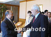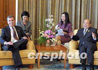 APEC特寫:跨國公司“高層公關”忙(多圖) 2001年10月19日 14:27 ![]() 中國外經貿部部長石廣生(右)十九日在上海會見出席APEC工商領導人峰會的美國時代華納集團總裁李文(左)。中新社記者 潘索菲 攝 ![]() 中國外經貿部部長石廣生十九日在上海會見出席APEC工商領導人峰會的美國聯邦快遞集團主席史密斯。石廣生說,美國聯邦快遞在中國快遞市場捷足先登。中新社記者 潘索菲 攝