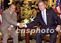 圖:美國(guó)總統(tǒng)會(huì)見馬來(lái)西亞總理 2001年10月20日 16:22 ![]() 10月20日,美國(guó)總統(tǒng)布什在上海會(huì)見馬來(lái)西亞總理馬哈蒂爾。中新社圖 |