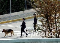 圖:警犬在上海APEC峰會(huì)外巡邏 2001年10月21日 11:15 ![]() 上海警方牽著警犬在國(guó)際會(huì)議中心外巡邏,APEC峰會(huì)十月二十日連續(xù)兩天在上海浦東舉行。中新社記者 賈國(guó)榮 攝 |