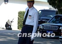 上海警方在浦東的高樓大廈上巡視,APEC峰會十月中下旬在此間舉行。中新社記者 賈國榮 攝