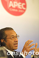 圖:馬哈蒂爾說反恐是無條件的 2001年10月21日 22:34 ![]() 參加APEC領導人非正式會議的馬來西亞總理馬哈蒂爾,二十一日在上海國際新聞中心的新聞發(fā)布會上說,反對國際恐怖主義是無條件的。中新社記者 劉殊瑾 攝 |