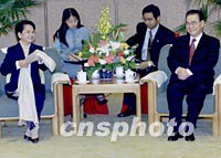 全國人大常委會委員長李鵬三十日在北京會見菲律賓總統阿羅約。中新社記者 滿會喬 攝