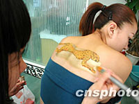 圖:北京女孩喜愛彩色體繪 2001年11月04日 18:08 ![]() 一個(gè)時(shí)尚女孩周末在北京體繪店內(nèi)請(qǐng)工作人員在她的后背繪上彩豹圖案。體繪出現(xiàn)在五千年前的古印度,在京城里,是專為酷哥靚妹們拍照,聚會(huì)時(shí)展示個(gè)性服務(wù)的。中新社記者 陳鋒 攝 |