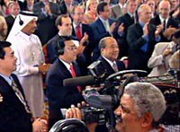 中新社記者現(xiàn)場(chǎng)特寫:多哈唱響“共贏”之歌 2001年11月11日 01:54 ![]() WTO多哈會(huì)議10日晚審議通過了中國入世,中國代表團(tuán)團(tuán)長石廣生、副團(tuán)長龍永圖出席會(huì)議。中新社記者 錢興強(qiáng) 攝 ![]() 卡塔爾財(cái)政、經(jīng)濟(jì)和貿(mào)易大臣Youssef Hussain Kamal先生在多哈一槌落下宣布通過中國加入WTO時(shí),多哈WTO第四次部長級(jí)會(huì)議的全體代表鼓掌向中國代表團(tuán)表示祝賀。