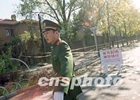 圖文:紐約空難后美國駐華大使館擴大警戒范圍 2001年11月13日 15:37 ![]() 北京警方13日在美國駐中國大使館前增加警力并擴大了警戒范圍,幾條通往使館門前的道路都設置了路障,禁止行人和車輛通行。美國美洲航空公司一架空中客車十二日在紐約墜毀,是否與恐怖主義襲擊有關仍有待進一步調查。中新社圖 武仲林 攝 ![]() 美國墜機事件后,中國軍方十三日對位于北京建國門外的美國使館區加強安保工作!熬乓灰弧焙笠恢睂嵭薪鋰赖拿朗桂^區內秩序安定。中新社圖 劉殊瑾 攝