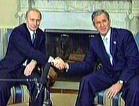 布什與普京舉行會晤 未能就反導(dǎo)條約達(dá)成協(xié)議 2001年11月14日 07:43 ![]() 俄美兩國首腦13日在美國開始為期3天的會談,就反導(dǎo)條約進(jìn)行磋商。這是普京出任總統(tǒng)后首次訪美,也是他和布什自今年6月以來的第4次會晤。中新社