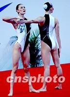 圖:九運會碧池邊的中國泳裝秀 2001年11月22日 14:41 ![]() 兩名江蘇美女身著雅致的黑白泳裝,胸前背后銹著中國書法“劍”字,極富魅力地展現在十一月二十二日的廣州九運會花樣游泳比賽中。中新社記者 賈國榮 攝 |