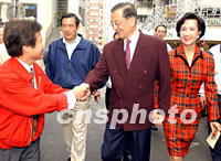 組圖:馬英九巡視臺北各街巷投票站 2001年12月01日 16:59 ![]() 國民黨籍的臺北市長馬英九被稱為本次臺灣選舉的五大競選天王(陳水扁、李登輝、連戰、宋楚瑜、馬英九),"小馬哥"清晨投票后趕到國民黨主席連戰的選區陪同連戰夫婦投票時,受到連戰住區的里長何信隆的歡迎。中新社記者 任晨鳴 攝 ![]() 國民黨籍的臺北市長馬英九12月1日陪同連戰和陳水扁投票后到各街區投票站巡視,馬英九表示臺北市警方已經做好防范不允許暴力活動出現。中新社記者 任晨鳴 攝