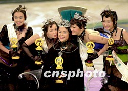 圖:國際華裔小姐新鮮出爐 2002年01月28日 16:13 ![]() 二零零二年度國際華裔小姐總決賽二十七日晚在廣州舉行,溫哥華小姐周雪獲得冠軍,多倫多小姐白穎茵(左二)獲得亞軍,吉隆坡小姐符愫娛(右二)獲得季軍。中新社記者 梁永強 攝 |