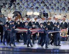 第十九屆冬季奧林匹克運動會開幕式組圖 2002年02月09日 11:26 ![]() 本屆冬季奧運會會旗入場。(美聯圖) ![]() 美國運動員代表和紐約的消防員、警察代表持世貿中心破損的美國星條旗入場。(美聯圖) 冬奧會開幕式會場鳥瞰。 ![]() 美國總統布什開幕式前與美籍華裔知名花樣滑冰選手關穎珊合影。