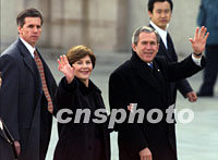 圖:美國(guó)總統(tǒng)布什抵達(dá)北京 2002年02月21日 11:07 ![]() 美國(guó)總統(tǒng)布什與夫人二十一日上午抵達(dá)北京首都國(guó)際機(jī)場(chǎng),開(kāi)始為期兩天的工作訪問(wèn)。中新社圖 毛建軍 攝