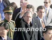 美國總統布什二十一日上午抵達北京首都國際機場,開始為期兩天的工作訪問。中新社圖 毛建軍 攝