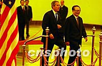 圖:江主席歡迎布什 2002年02月21日 13:03 ![]() 中國國家主席江澤民二十一日在北京人民大會堂舉行儀式,歡迎美國總統(tǒng)布什訪問。中新社記者 賈國榮 攝