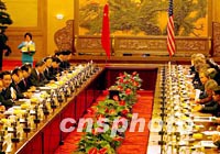 ![]() 美國總統布什二十一日中午在北京出席兩國首腦會談。中新社記者 賈國榮 攝