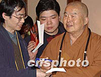 組圖:法門寺佛指舍利赴臺供奉新聞發布會 2002年02月22日 09:54 ![]() 法門寺佛指舍利赴臺供奉新聞發布會,日前在西安喜來登大酒店舉行,中國佛教協會等有關人士和臺灣佛教人士以及來自大陸、港臺的眾多記者參加了發布會。圖為臺灣惟覺法師與法門寺凈一方丈在發布會上。中新社記者 錢興強 攝 ![]() 法門寺佛指舍利赴臺供奉新聞發布會,日前在西安喜來登大酒店舉行,中國佛教協會等有關人士和臺灣佛教人士以及來自大陸、港臺的眾多記者參加了發布會。圖為臺灣星云法師為賓客簽書。中新社記者 錢興強 攝