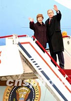 圖文:“空軍一號”騰空 布什結束訪華離京回國 2002年02月22日 16:26 ![]() 美國總統布什和夫人二十二日下午在北京登上空軍一號招手告別,結束中國之行。中新社記者 賈國榮 攝