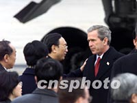 圖:駐美大使楊潔篪為布什送行 2002年02月22日 18:30 ![]() 美國總統布什二十二日下午結束對中國為期兩天的工作訪問后,乘專機離開北京。中國駐美大使楊潔篪等前往機場送行。中新社記者 滿會喬 攝