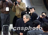 圖:中外記者聚焦布什離京 2002年02月22日 18:31 ![]() 美國總統布什二十二日結束對中國的工作訪問離開北京,中外記者云集北京首都機場拍攝布什離京畫面。中新社記者 滿會喬 攝