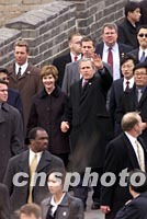 圖:布什與夫人在八達嶺長城 2002年02月22日 19:26 ![]() 美國總統布什與夫人勞拉二十二日下午在警衛和陪同人員簇擁下,興致勃勃地登上北京八達嶺長城。中新社記者 毛建軍 攝