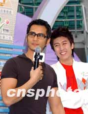 圖:陳啟泰與陳司翰參加滅罪音樂會 2002年02月24日 20:30 ![]() 因主持有獎問答電視游戲“百萬富翁”而成為香港家喻戶曉的明星陳啟泰,24日與青春偶像歌手陳司翰一起參加在維園舉辦的“新世紀-新東區”滅罪音樂會。中新社傳真 洪少葵 攝