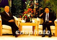 ![]() 中國總理朱镕基七日在北京人民大會堂香港廳,會見剛剛連任香港特別行政區(qū)第二任行政長官的董建華先生。中新社記者 賈國榮 攝