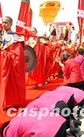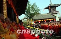 ![]() 三十一日下午,陜西省法門寺舉行盛大法會(huì),迎接佛指舍利赴臺(tái)瞻禮歸來(lái)。圖為法會(huì)會(huì)場(chǎng)。中新社圖 武仲林 攝