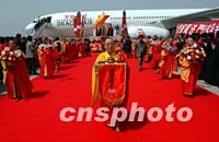組圖:佛指舍利在臺(tái)供奉瞻禮結(jié)束順利返回陜西 2002年04月01日 08:38 ![]() 赴臺(tái)供奉三十七天的法門寺佛指舍利三十一日抵達(dá)陜西咸陽(yáng)機(jī)場(chǎng)。圖為咸陽(yáng)機(jī)場(chǎng)舉行盛大迎歸儀式。中新社圖 武仲林 攝
