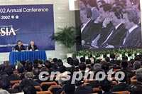 ![]() 博鰲亞洲論壇首屆年會十二上午在海南博鰲開幕,日本首相小泉純一郎在開幕式上發(fā)表主旨演講。中新社記者 滿會喬 攝
