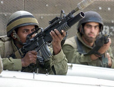 圖:以色列士兵發射催淚彈驅散巴勒斯坦游行者 2002年04月12日 16:35 ![]() 4月11日在以色列占領區拉馬拉城市的中心廣場上,以色列士兵向空中射擊并放催淚彈驅散巴勒斯坦抗議游行者。法新圖