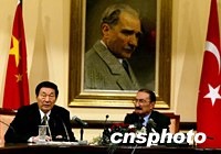 圖:朱镕基談中土共同打擊“東突”恐怖分子 2002年04月17日 09:49 ![]() 朱镕基總理4月16日在安卡拉與土耳其總理埃杰維特會談后,就中土共同打擊“東突”等問題共同會見記者。作者:岳堯